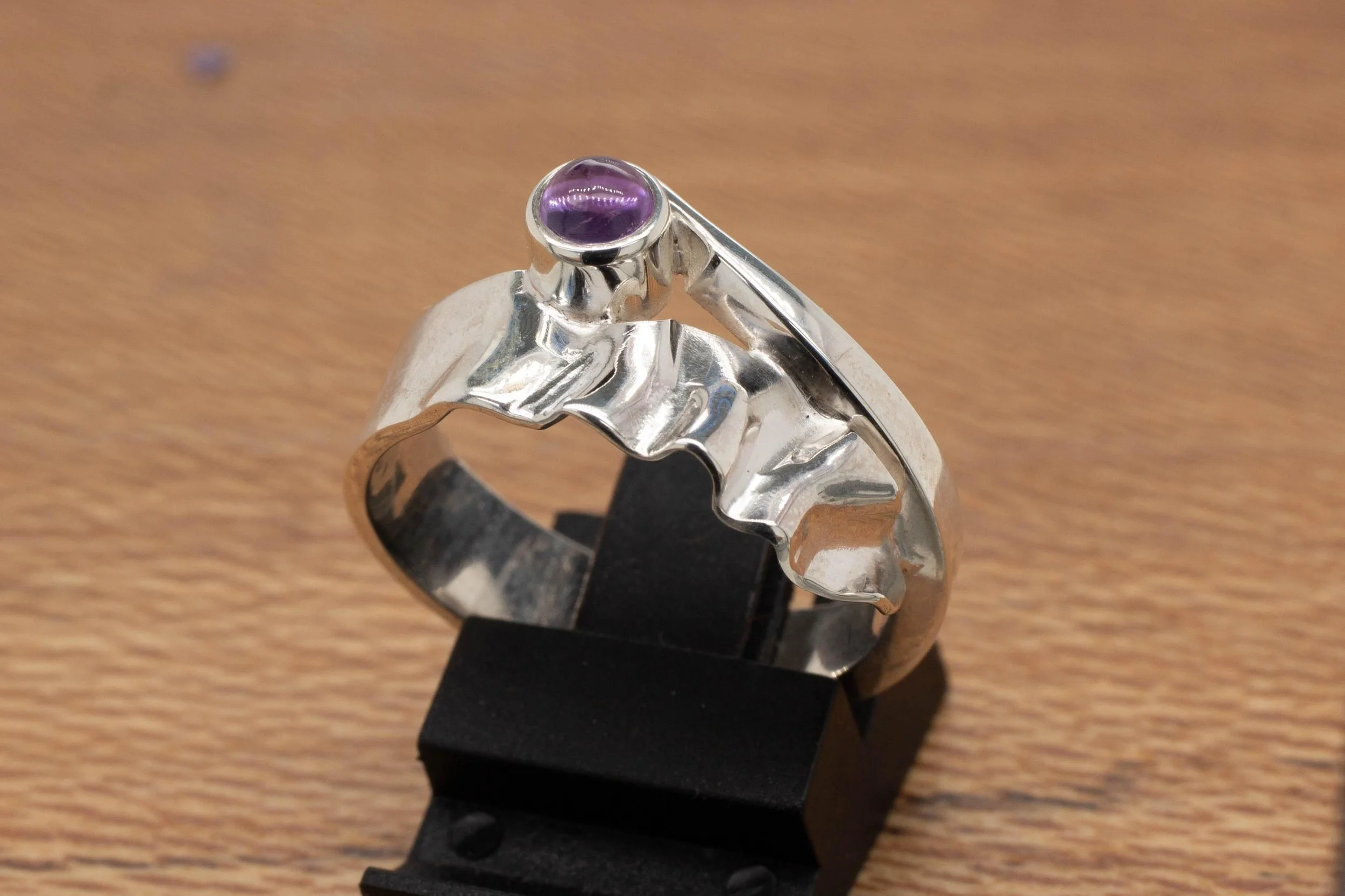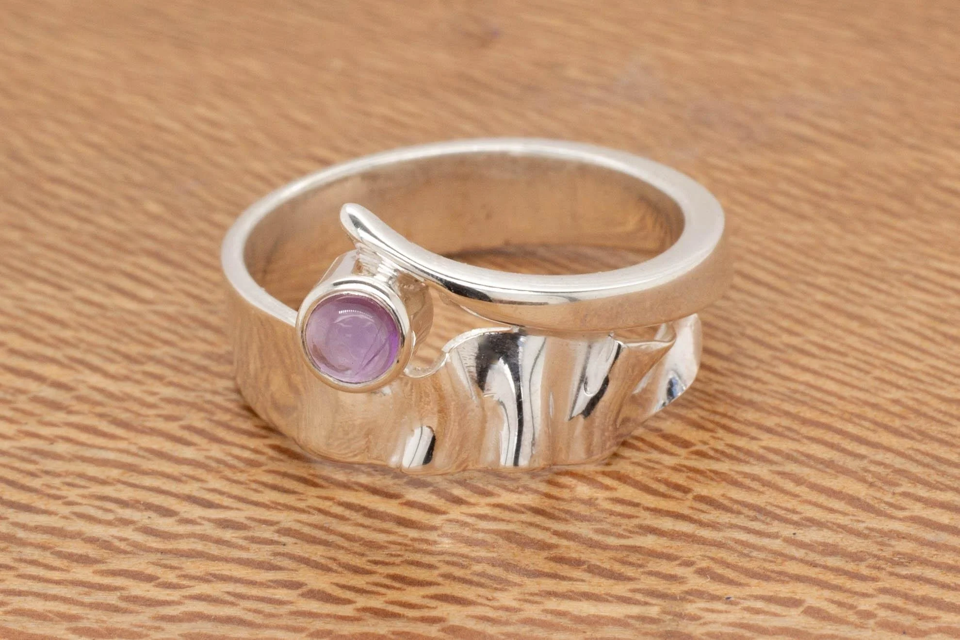 Each piece is hand fabricated, starting from flat sheets of metal. We manipulate the flat material with custom made tooling to create an undulation and waves within the metal. Each piece is then meticulously polished or textured to create a variety of styles within the jewelry line.